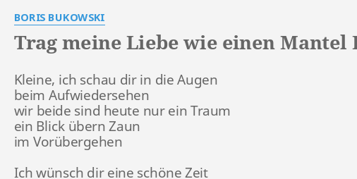 Trag Meine Liebe Wie Einen Mantel Lyrics By Boris Bukowski Kleine Ich Schau Dir
